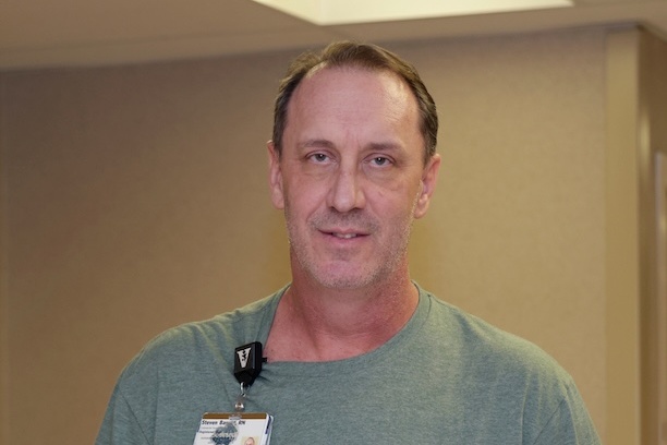 Nurse of the Quarter: Steven Barrett, RN - 4RW - From Steven's nomination: With her permission to share this story, our MCN RW Dietary Aide Riley Odom choked while taking a break and eating in the 4RW nutrition area on Friday, May 16th. She was totally obstructed while eating and began to knock on the wall and gesture with the sign she was choking. Steven, who was working as charge nurse that day, noticed her choking and immediately jumped into action. He began the Heimlich maneuver, which ultimately dislodged the food and saved her life. Along with the assistance of Nurse Hattie Isham, they then began monitoring Riley's vitals and calling for a tiered response to determine if she needed further care. Riley was evaluated in the Emergency Department and was ultimately cleared for discharge.